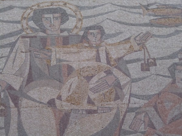 Mosaico de A. Bartolomé en la fachada de la iglesia.