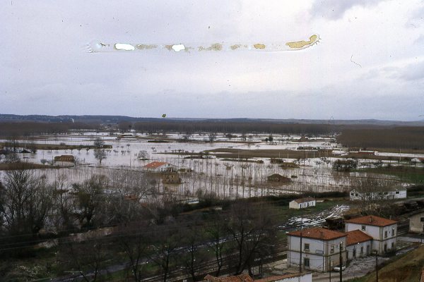en el que ahora vemos abundantes choperas y algunos edificios, junto a caminos